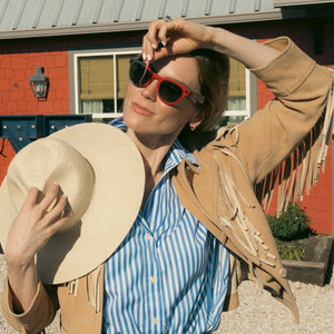 Our signature red, now precision-crafted for the Ray-Ban Meta Headliner frame.